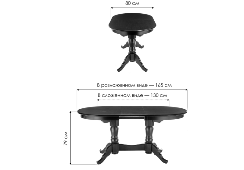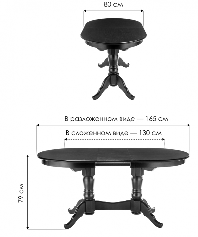 Длина стола в разложенном виде: 165 см.